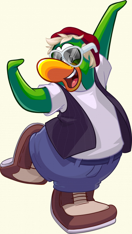 Пингвин зелёного цвета. Аккордионист, гитарист, пианист музыкальной группы "Пингвины".