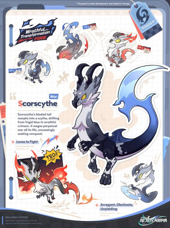 Хвост-лезвие Пламекоса превращается в косу, переходя от ледяного синего к яростному багровому цветовому оттенку. Он ведёт вечную войну на протяжении всей жизни, непрестанно стремясь к завоеваниям.