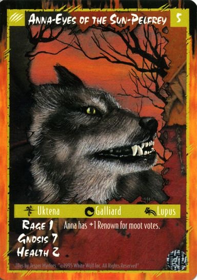Анна Одна из самых влиятельных членов Кошачьей Колыбели, Графиня Анна раз в сезон проводит собрания в «своем» поместье в Беркширских горах. Ее вечеринки на Самхайн стали в том регионе легендой, и королева Маб высказала Анне ряд резких замечаний после того, как они «превысили меру». Анна недавно увлеклась стрельбой из лука, и на прошлый Йоль получила лук мастерской работы от герцога Жиля.