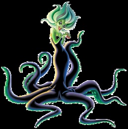 Еще одно отличие от Морганы заключается в том, что Урсула никудышная чародейка. Она даже не смогла вернуть Громиле его облик. Правда она так же, как и сестра, умеет выделять чернила.
