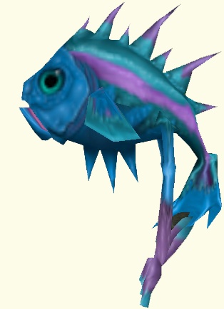 Синяя или фиолетовая чешуйчатая рыба, которая появлялась на протяжении всего путешествия Алисы в Стране Чудес.