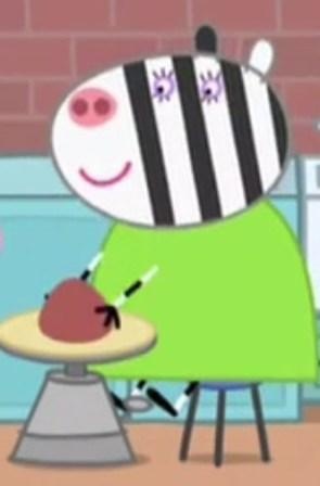 Мистер Зебра Папа Зои. Работает почтальоном. В серии «Папина камера» присылает папе Свину камеру.