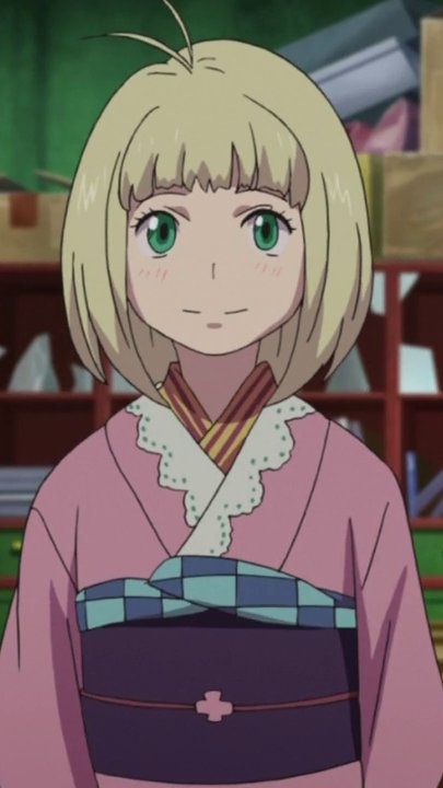 Дочь владелицы магазина антидемонических товаров "Фуцумия". Одноклассница Рина. Как и он, хочет стать экзорцистом. Получила звание Эксвайра. Призывает фамильяра — зелёного человечка по имени Нии-чан.