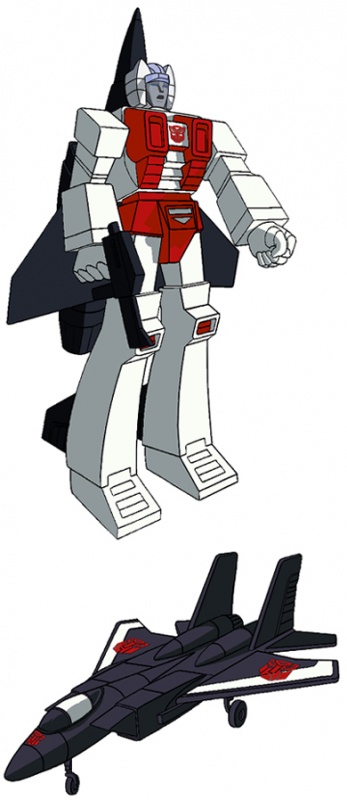 Способности: В воздухе развивает скорость в два с половиной раза превышающую скорость звука, дальность полета — 1500 миль. В режиме самолета вооружение составляют ракеты с инфракрасным наведением, в режиме робота — специальная винтовка, луч которой воздействует на цель с крутящим моментом силой до 80000 фунтов на квадратный дюйм. Только очень прочные материалы могут выдержать подобные нагрузки, не разрушаясь. Совместно с другими Аэроботами образует гигантского робота Супериона.