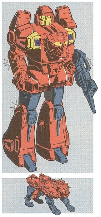 Способности: В режиме тигра способен совершать прыжки до 500 футов в длину и до 300 в высоту. Рэмпейдж невероятно силен — одним ударом передней лапы может разрушить стену из шлакоблоков. На каждой лапе установлены малокалиберные пулеметы, скорострельность которых достигает 300 выстрелов в минуту. В режиме робота вооружен, помимо пулеметов, винтовкой, стреляющей электрическими разрядами напряжением до 60000 вольт. Есть у него и термомеч, лезвие которого раскаляется до 5000 °C и режет большинство металлов как масло. Является составной частью гигантского робота Предакинга.