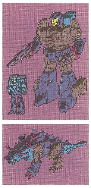 Способности: Не будучи наделенным особым умом, Хоррибулл очень сильный и крепкий (хотя, ходят слухи, что добрая часть его брони — всего лишь налипшая грязь). Он — неуклюжая машина разрушения, владеющая (в режиме робота) сотрясательным бластером с рабочим диапазоном более чем в 12 миль. В режиме быка его броня еще более интенсивна и крепка, а свой хвост он использует как огнемет для испепеления врагов. Если Хоррибулл захочет скрыться от вражеских оптик (а это не то, что он вынужден делать часто), он может выбросить эффективное, но пахучее, густое облако темного дыма, что скроет его из виду. Его никак нельзя назвать быстрым, но он всегда делает свою работу!