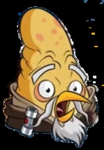 Впервые персонаж появляется во вступительном ролике птичьей стороны эпизода Rise of the Clones вместе с остальными джедаями. Представляет из себя птицу среднего размера с очень вытянутой формой головы. На лице имеет пышные седые усы с бородой и несколько морщин. Заметны мешки под глазами.