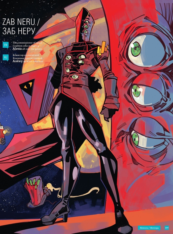 Заб носит тёмный костюм с нашивкой Союза справедливости и порядка на правом плече, перчатки и туфли на каблуках. Считает Землю и живущих на ней людей отсталой цивилизацией с населением в виде полуразумных дикарей, на Алёну Кузнецову всегда смотрит с подозрением и недоверием, а также с толикой презрения.