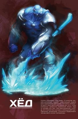 Технобог, созданный Рихардом Риппе. Коренастое широкоплечее существо. На левой части лица имеет три светящихся синим глаза. На груди две металлические пластины. Такие же пластины большего размера защищают его лоб, подбородок, плечи, руки от кисти до локтя и ноги от ступней до колена. В левой руке держит ледомёт в форме копья. С помощью ледомёта испускает жидкий азот под большим давлением. Способен за несколько секунд заморозить любой живой или неживой объект. Сам к холоду невосприимчив.