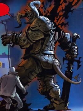 Сын Велиала, демон разврата и разрушения. Высокий, примерно в три раза выше человека, мускулистый, с телом закованный в тяжёлую пластинчатую броню, на голове носит шлем с большими рогами. Вооружён огромным мечом.