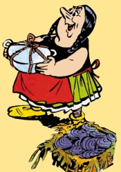 Бесподобная торговка, который использует все богатства ораторского мастерства жителей Массалии, чтобы соблазнить вас при виде её свежевыловленных морских ежей и восхитительных рыб-скорпионов. Жена Цезаря Грандприкса, она с любовью готовит буйабес на вынос для Астерикса и Обеликса, в то время как ее муж сдерживает римлян, обещая им «кровопролития», если они осмелятся прервать игру в шары.