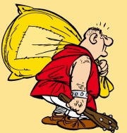 Один из двух римских разбойников, которые бродя по пути из Галлии набрели на очень легкую добычу: двух галлов, задремавшим на дороге, оставив без присмотра внушительный мешок. Эта задача была бы легче чем отнять конфетку у ребенка...