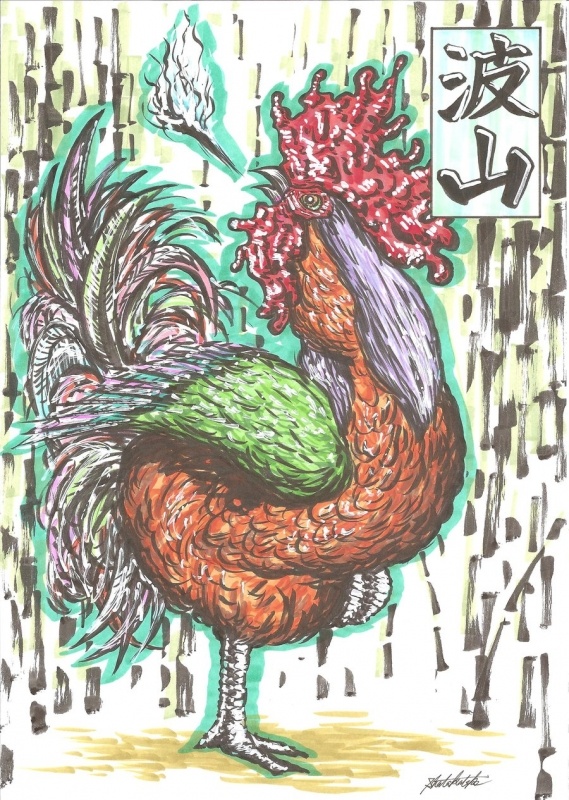 Басан — очень редкая птица-ёкай, которая встречается только в горах префектуры Эхимэ, на острове Сикоку. Размером басан примерно с индейку, а видом весьма похож на петуха. Их легко узнать по разноцветному оперению и ярко-красному гребешку, который похож на язык пламени. Отличительной особенностью этой птицы является ее огненное, как у дракона, дыхание, однако вылетающее из клюва пламя не обжигает.