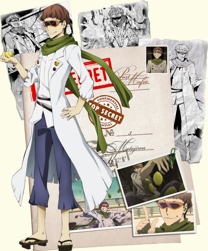 Один из членов Портовой Мафии, известный своей репутацией подрывника всего и вся. Помимо страсти ко взрывам интересуется наукой и гордо именует себя ученым исследователем.