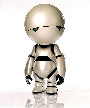Марвин — бортовой робот космического корабля Золотое Сердце. Создан в лабораториях Кибернетической корпорации Сириуса по программе прототипов с «истинно человеческими личностями». Робот страдает от тяжёлой формы депрессии и скуки, как он сам объясняет, из-за того, что «его мозг размером с целую планету, но ему редко разрешают им пользоваться». Сильное отвращение к жизни у Марвина появилось из-за того, что ни одна задача не может занять даже минимально его безграничный интеллект. Сам Марвин заявляет, что он «в 50 тысяч раз более разумен, чем человек», хотя и признаёт, что это существенная недооценка.