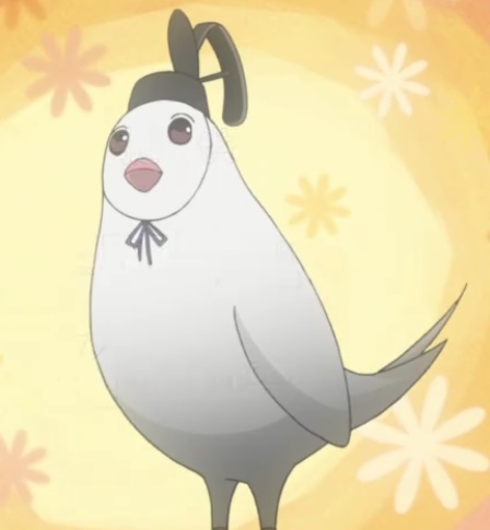 Выглядит как белая птица. На голове имеет канмури — "ранговую шапку" японской аристократии, которую носили только привилегированные придворные мужского пола и мужчины императорской семьи.