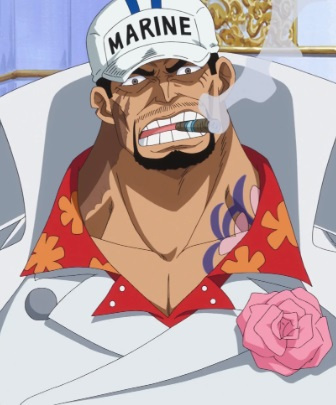 Адмирал флота Морского Дозора. В прошлом был одним из трёх адмиралов Морского Дозора. Зверски убил Портгаса Д Эйса. Придерживается принципов "абсолютного правосудия".