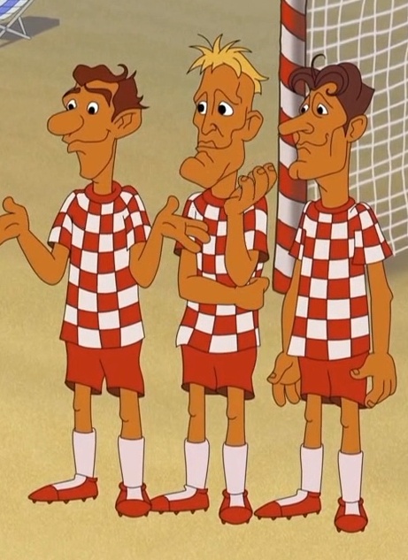 Команда хорватских футбольных игроков. Они дважды случайно разбили Око мячом бокал с коктейлем.