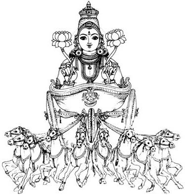 Вахана — колесница, запряженная десяткой лошадей.