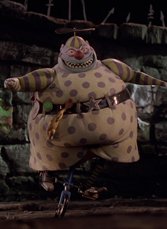 Клоун с оторванным лицом-гражданин города "Хэллоуин", который может оторвать свое лицо, раскрывая полое пространство позади. Всегда катается на одноколесном велосипеде, его часто видят с Бегемотом. Когда у него есть лицо, его голос высок, но когда он снимает его, это глубокий страшный голос. Он может исчезнуть в облаке дыма.