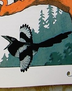 Болтливая сорока, знакомая белки Сирле, завела Нильса в чащу, а потом решила что он украл бельчонка Тирле.