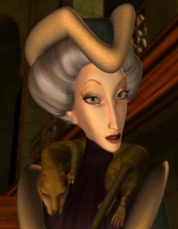 Колдунья, держащая Рапунцель в качестве прислуги. Ругелярно напоминает, что взяла Рапунцель к себе, когда родители бросили её.