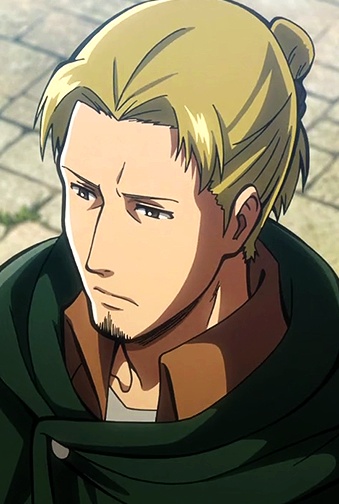 Входит в Развед-отряд и в Специальный отряд Леви. Погиб в бою, защищая Эрена от Женской особи, перед этим приказав Эрену уходить.