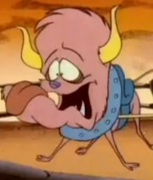 Пёс Монстра с той стороны улицы. Розовая окраска, на конце хвоста кисточка в виде креста. Битлджус обожает издеваться над собачкой. Влюблён в собаку Монстрихи с той стороны улицы по имени Пупет.