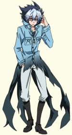 Под курткой Куро носит черную футболку и белые брюки с высокими черными сапогами.