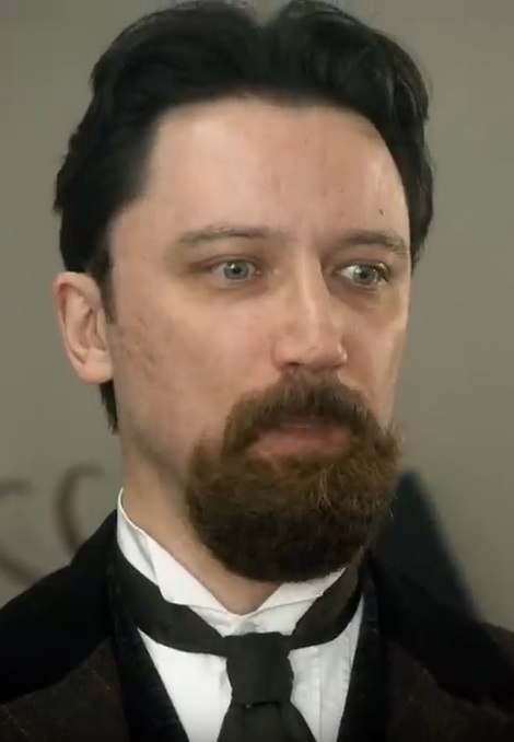 Коммерсант, зять убитого в цирюльне Игната Любишкина, муж Антонины. С его собственных слов дал денег Любишкину, чтобы тесть купил им с женой дом, а тот эти деньги спустил в карты. Стремится заполучить кольцо тестя любой ценой (появляется в новелле "Дело лысых").
