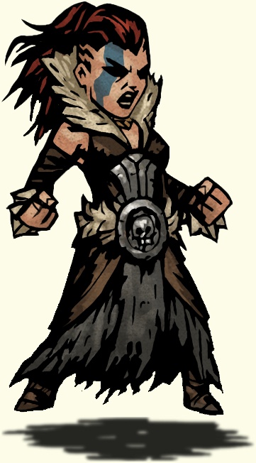 Свирепая, непредсказуемая и безумно жестокая дикарка обожает вид крови. Огромной глефой она может дотянуться очень далеко и оставить на врагах глубокие шрамы. Некоторые навыки подрывают её силы и иногда ей нужно пропустить ход и набраться адреналина, прежде чем снова броситься в бой.