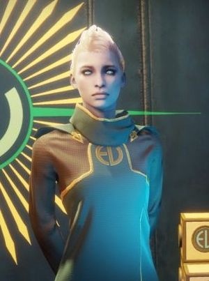 Торговец из расы Пробужденных. Она занимается продажей различных товаров, приобретенными в пределах и за пределами Города.