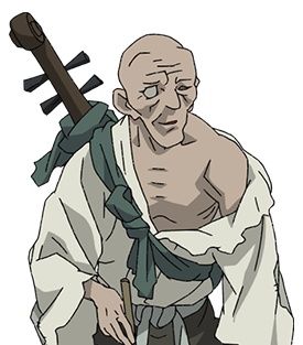 Слепой странствующий монах, часто пересекающийся с Дороро и Хяккимару и помогающий им. Несмотря на преклонный возраст, ловко орудует мечом, который прячет в лютне (кстати, эта разновидность лютни называется "бива").