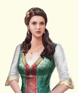 Наложница, которая попадает в гарем к султану при достижении порога 1 000 000 репутации. На прогулках можно встретить на Пристани. Соответствует фавориту Алексису.