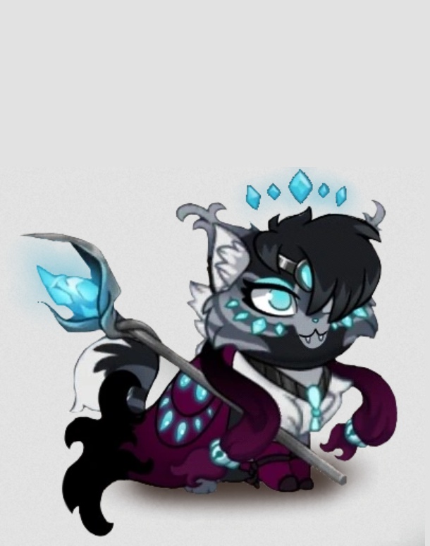Кошка-колдунья, искательница драгоценных камней. Предпочитает, чтобы никто не трогал ни её, ни её сокровища. Стала колдуньей, когда подобрала магический талисман с драгоценным камнем.