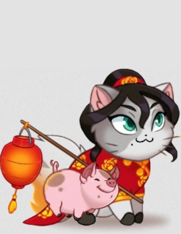 Питомец Сяо Хуэй, маленькая розовая свинка. Чжу всегда находится подле хозяйки.