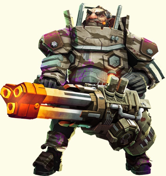 Его оружие — это тяжелый многоствольный пулемет или двухствольная автоматическая ручная пушка, а также крупнокалиберный револьвер или скорострельный пистолет-пулемет.