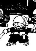 Командир отряда полиции, руководивший облавой под мостом в Брехенвиле, во время которой попались Незнайка и Козлик.