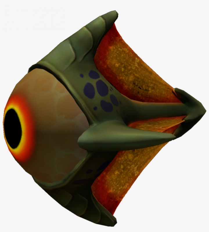 Лавовый подвид обычного Глазастика. Это маленькая рыбка с красно-жёлтым телом. Она имеет один огромный глаз спереди и четыре ребра, которые направлены в сторону хвоста. Плавники полупрозрачного красноватого оттенка.