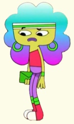 Её рубашка фиолетово-красная, а штаны фиолетовые. Она носит зелёные браслеты и зелёные носки. Она также носит фиолетово-красные туфли и зелёную и белую полосатую повязку с зелёными серьгами. Начиная со второго сезона, у неё нет рукавов на рубашке, тень под её телом стала светлее, у неё появились брови и тёмные оттенки на обуви.