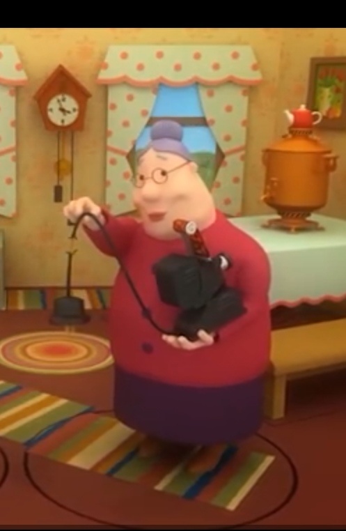 Второстепенный персонаж, бабушка Маши и Саши. У бабушки зелёная кофта с красными пуговицами и серая юбка. Имеет "гульку" и носит очки. Бабушка очень любит своих внуков, так как очень обрадовалась их приезду.