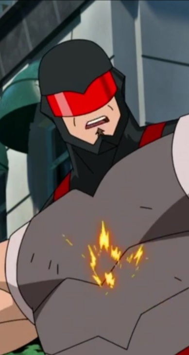 Суперзлодей с прочным боевым костюмом и лазерной пушкой. Первый противник Атомной Евы.