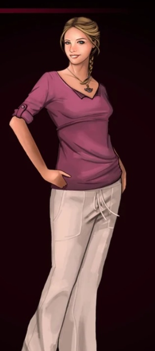 Персонаж из игры "Усыпальница пропавшей королевы". Аспирант, изучающий палеонтологию в Кингстонском университете в Нью-Йорке. Археология — её страсть, и она чрезмерно рада впервые принять непосредственное участие в раскопках. Она надеется найти мумию, но понятия не имеет, что ей нужно для этого сделать. Она восхищается Абдуллой, но не спешит во всем с ним соглашаться.