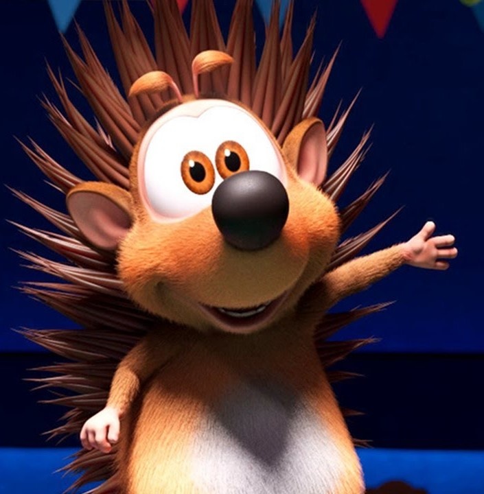 Еж с оранжевой и белой шерстью с коричневыми колючками. У него также белые глаза с жёлтыми зрачками. Добрый, хороший друг. Любит играть и дружит с Бубой.