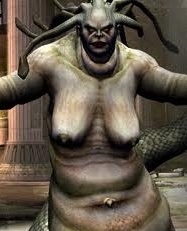 В греческой мифологии была одной из двух Бессмертных Горгон и одной из трех злобных сестер с медными руками, острыми клыками и волосами, сделанными из живых ядовитых змей. Как и ее сестры, она была способна превратить любое существо в камень одним взглядом. Обладает определенной неуязвимостью для оружия смертных. Однако это гораздо меньше, чем у любого Бога или Титана. Эвриала способна совершать подвиги огромной силы, демонстрируемые, когда она подтягивается на столбах. Она быстра, несмотря на свой размер, и, как и все Горгоны, способна поражать врагов, но способна контролировать интенсивность, начиная от маленьких быстрых шаров и заканчивая широким взглядом, охватывающим область. После смерти своих сестер она стала королевой Горгон. Она намного крупнее меньших Горгон и по сравнению с ними чрезвычайно сильна.