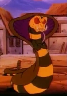 Довольно крупный змей. Зелёный с полосатым брюхом. У него больше красные глаза, лицо, отдалённо напоминающее обтянутый кожей череп, две руки, капюшон, как у кобры, и погремушка на хвосте, как у гремучей змеи. Немного схож по характеру с фениксом Нидлом. Такой же трусливый и любит похвастаться, хотя порой ведёт себя гораздо разумнее, чем прочие персонажи. Играет роль помощника Рат-Амона, хотя помощник из него, по словам Рат-Амона, негодный. Однако полезен для проведения шпионских манёвров. Извечный враг Нидла.