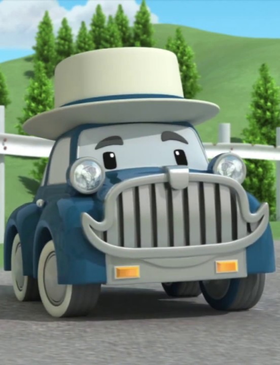 Синий легковой автомобиль с белой шляпой и бампером в форме усов. Дедушка Мини и самый пожилой автомобиль в городе. Линкольн Марк VIII, пожилой, верный и спокойный.