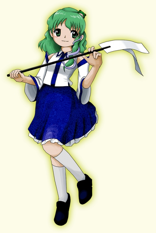 Человек, являющийся дальней родственницей богини Сувако Мории. Её работа в храме Мория сравнима с работой жрицы, но, благодаря наследственной силе, Санаэ является непосредственно божеством. Родившаяся во Внешнем мире, Санаэ его покинула, поскольку люди утратили веру в Сувако и Канако, из-за чего последняя решила переместить храм в Генсокё, где другие люди и ёкаи могли верить в неё. В результате этого Санаэ знает довольно много о внешнем мире и современной жизни, однако её попытки объяснить научные понятия жителям Генсокё заканчиваются их недоумением. С другой стороны, она знает гораздо меньше о ёкаях и других обычных для Генсокё вещах, чем можно было бы ожидать от жрицы.