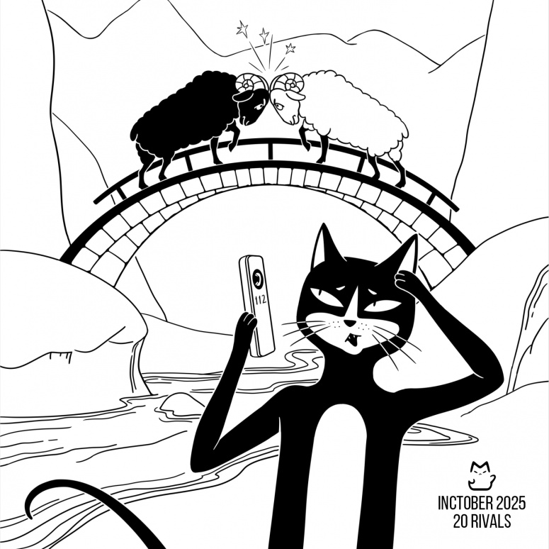 Кот Федот пытается предотвратить несчастный случай. Inktober2025-20-соперники