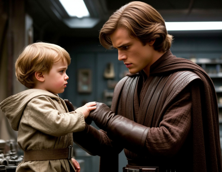 AU, Энакин Скайуокер одолел канцлера, который оказался ситхом, и перестал быть джедаем. А ещё назвал сына так, как собирался, и улетел с ним домой. На Татуин.
